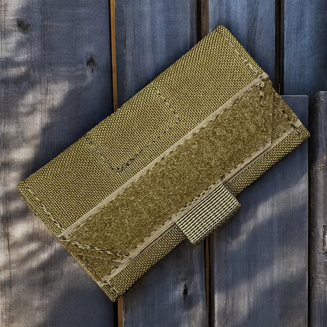 Our mini admin battery pouch MOD1 is perfect for carrying any small items that you don’t want swimming around in your pockets! Velcro backed with velcro closure and is ready to mount anywhere you have velcro loop attached! Holds up to 5 AA batteries.